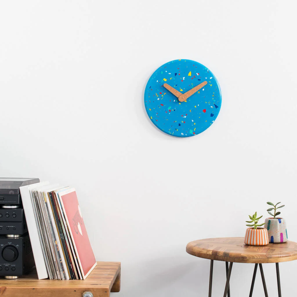 Günümüzde farklı ürün örneklerinde karşımıza çıkan, yenilikçi ve modern malzemelerden bir diğeri ise mantar. Birçok yerde bulup satın alabileceğin bu ekonomik ve pratik malzemeyi kolaylıkla dilediğin ölçü ve biçimlere adapte edebilirsin. Gözenekli ve kendine has dokusundan dolayı ilgi çekici bir görünüm sergileyen bu malzemeyi parlak ve canlı renklerle bir araya getirmek oldukça revaçta. Sen de mantar dokulu duvar saatini uygun boyalar veya renkli bantlar ile detaylandırabilirsin.